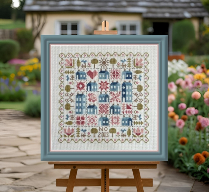 - sur une toile de 11 fils (ou Aïda 5,5) : 21,3 x 21,3 cm