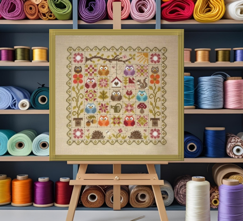 - sur une toile de 11 fils (ou Aïda 5,5) : 21,3 x 21,3 cm
