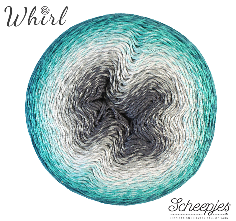 Scheepjes Whirl is een mooi, soepel vallend garen met een prachtig kleurverloop. Het is een zogenaamd unicatgaren, waarbij de kleuren per draad verspringen. Dit zorgt voor vloeiende, natuurlijke kleurwisslingen. Scheepjes Whirl is volledig getwijnd, wat voorkomt dat het garen bij snel breien of haken splijt. Elke kleurwisseling is zorgvuldig met de hand verwerkt. Het kan echter voorkomen dat het garen op de plek van de kleurovergang enigszins pluist (de zogenaamde 'fuzzbuzz'). Om dit op te lossen, kun je het topje van je vingers natmaken en de fuzzbuzz tussen je vingers glad draaien, zodat je project een mooie gladde afwerking krijgt. Door het soepele resultaat is Scheepjes Whirl perfect voor (kant)sjaals, accessoires, kleding en stijlvolle home deco-projecten. De extra lange looplengte van de garencakes maakt dat één cake al genoeg is voor een grote sjaal of omslagdoek.